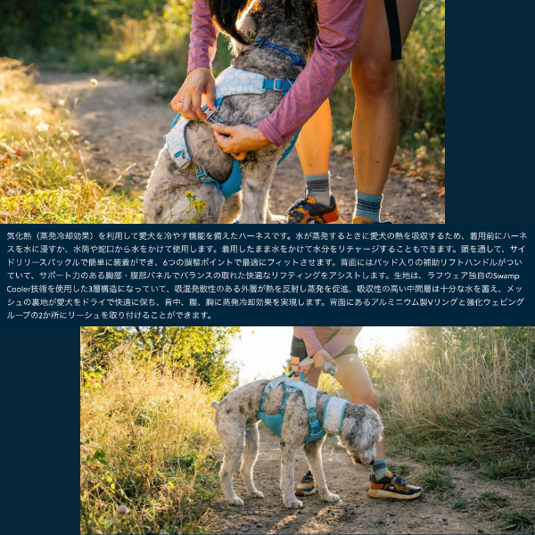 気化熱(蒸発冷却効果)を利用して愛犬を冷やす機能を備えたハーネスです。